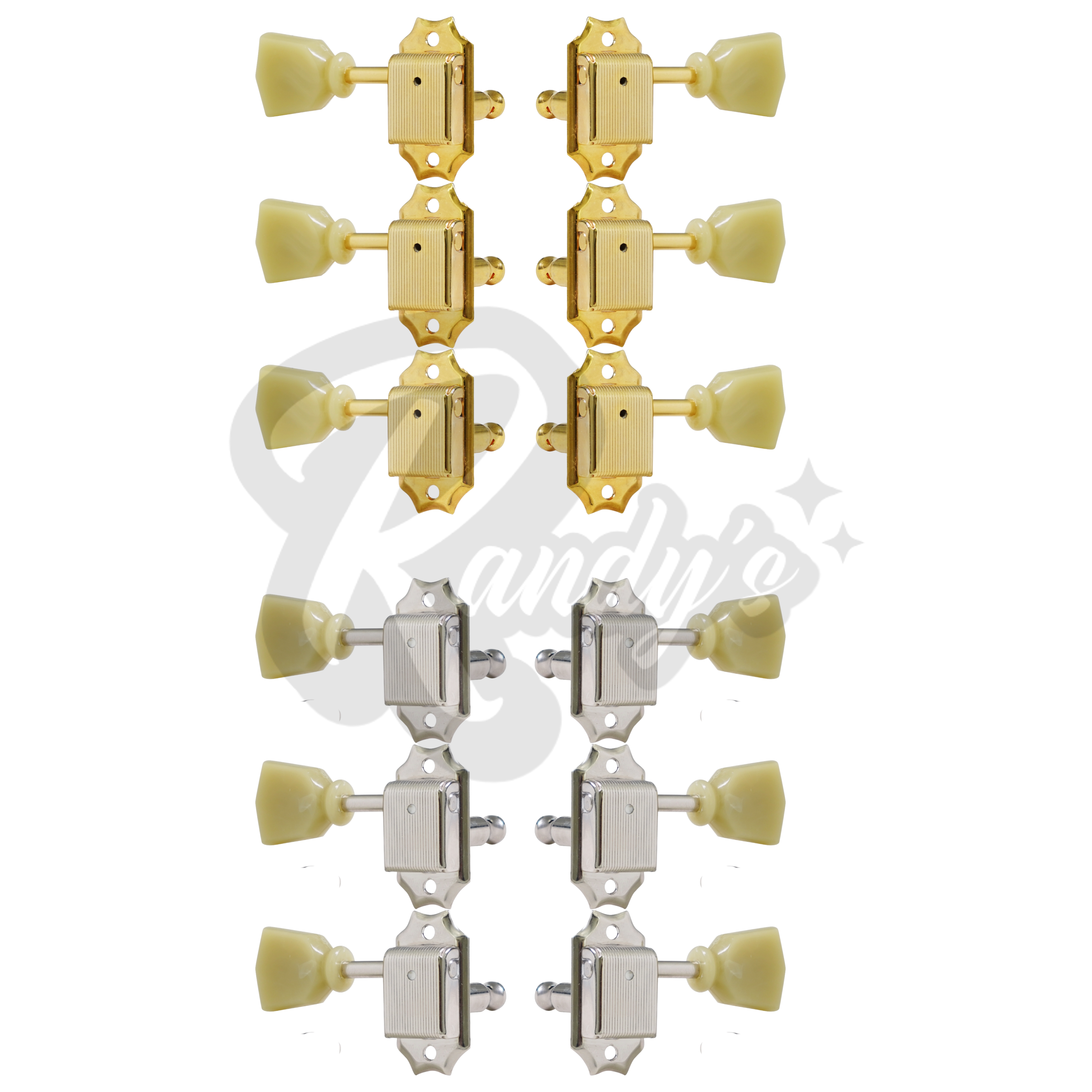 Includes six HOSCO "Vintage Tone Revival" VTR tuners by Gotoh® for acoustic and electric guitar. Includes bushings and mounting screws.